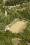 Il primo campo sportivo della storia di Fauglia fu realizzato in via Pontita sotto l'attuale sede CRI. Nell'anno 1948 con la costituzione di un'associazione calcistica organizzata volontari di Fauglia posero mano alla costruzione del nuovo impianto sportivo collocato ove si trova tutt'ora all'epoca del primo sindaco repubblicano del Comune sign. Gino Catastini. Il lavoro fu portato a termine grazie ai fondi del piano ERPE finalizzato alla riduzione del tasso di disoccupazione nell'Italia appena uscita dal secondo conflitto mondiale mediante la realizzazione di opere di pubblica utilità. La paga per i lavoratori era di 500 lire al giorno, aumentate a 700 per chi aveva famiglia. Gli spogliatoi furono invece realizzati nel 1965 con il lavoro volontario dei passionisti del calcio faugliese. Il 1965 fu anche il I anno nel quale la formazione calcistica di Fauglia si iscrisse al Campionato di III Categoria FIGC. Fino a quel momento i giocatori utilizzavano come spogliatoi sia i locali dei bagni pubblici siti al piano inferiore dell'attuale sede ASL sia la stanza di rimessaggio del Carro funebre della Misericordia presso la struttura dell'antica Chiesa di S. Lorenzo posta sopra il campo sportivo. La recizione risale invece all'anno 1967 e l'impianto di illuminazione al 1968. Entrambe le opere furono realizzate grazie all'impegno dei giocatori e passionisti del calcio faugliese. L'impianto sportivo fu intitolato alla memoria del Sig. Giampiero Giampieri, dirigente e passionista del calcio che era stato per tanti anni custode dell'impianto sportivo dedicandovi impegno e volontà per il costante miglioramento della struttura.